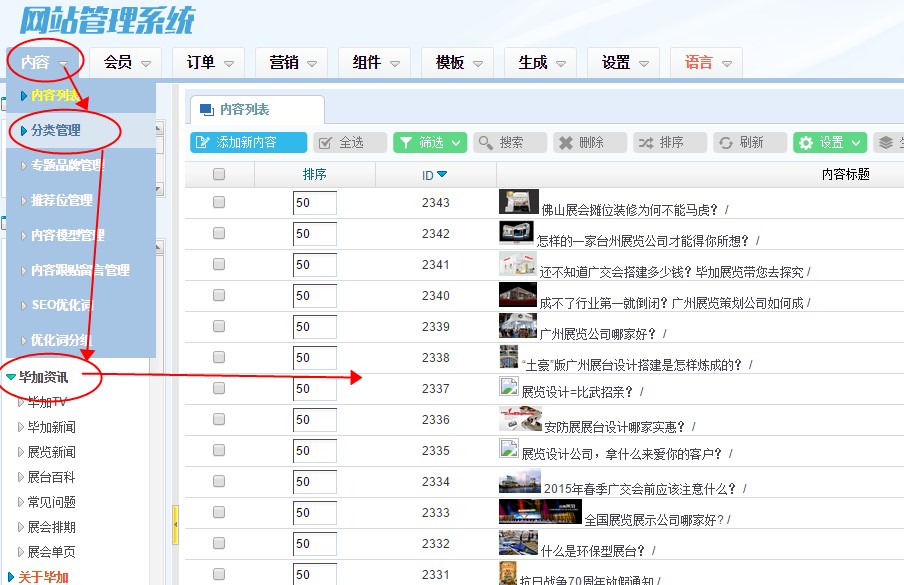 比如 廣交會展臺 分類,下面就可以只顯示廣交會相關(guān)的分類資訊,如圖: