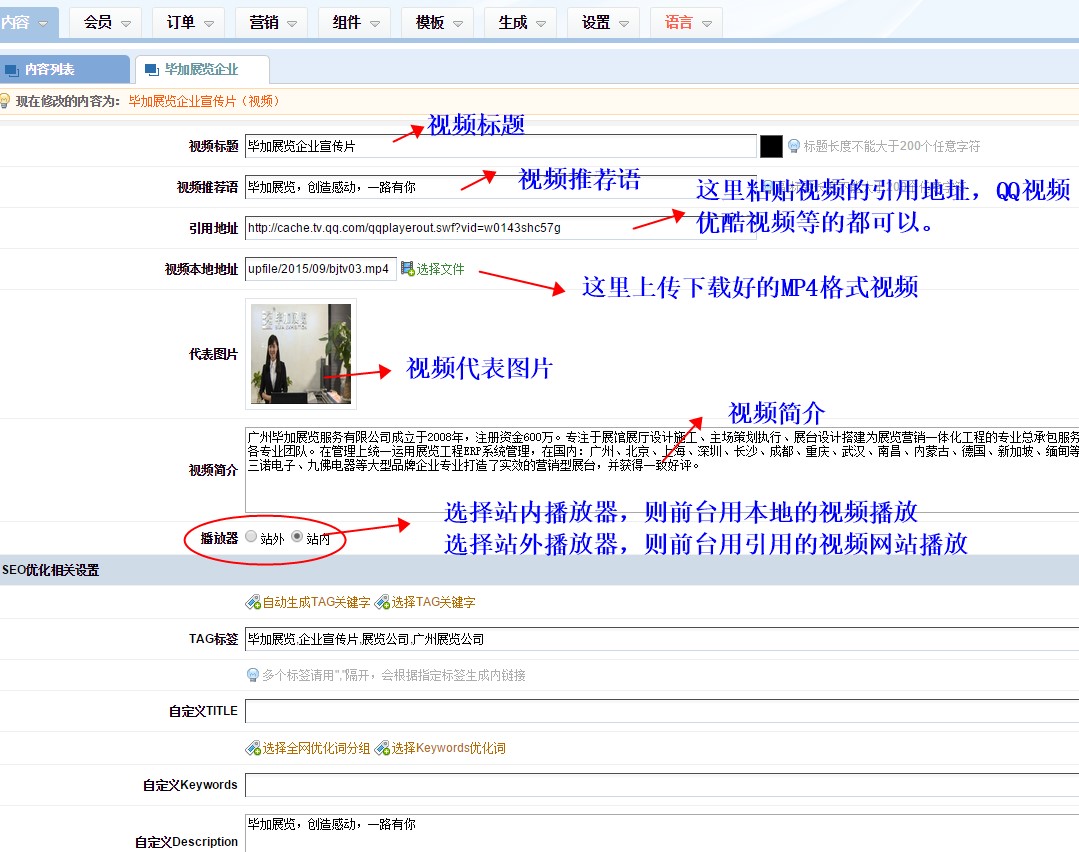 后臺(tái)如何添加騰訊QQ視頻和本地視頻