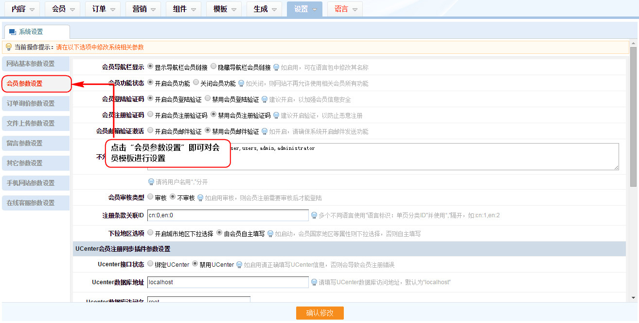 1、會員導航欄顯示:是否在網(wǎng)站導航上面顯示會員鏈接,如啟用則顯示,會員鏈接文字可在語言包中修改其名稱;