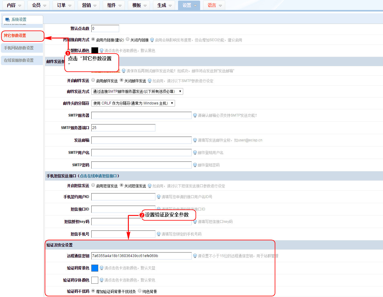 1、遠程通信密鑰:用于站群通信使用的密鑰,請設置不小于15位的遠程通信密鑰;