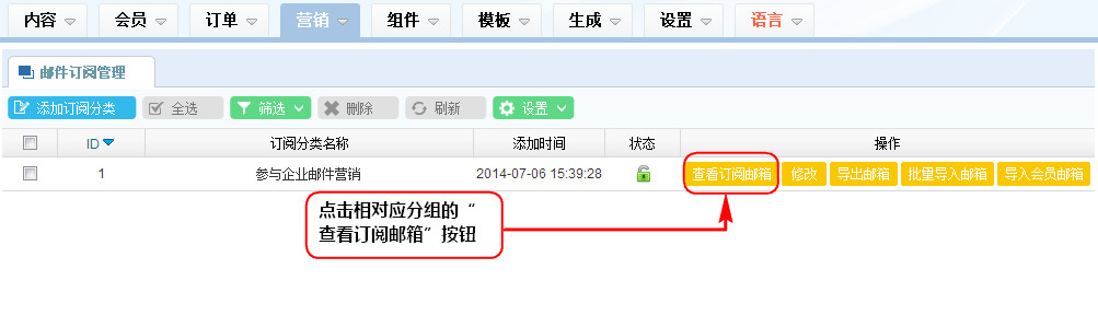 1、在郵件訂閱列表區(qū),點擊相對應分組的“查看訂閱郵箱”按鈕;