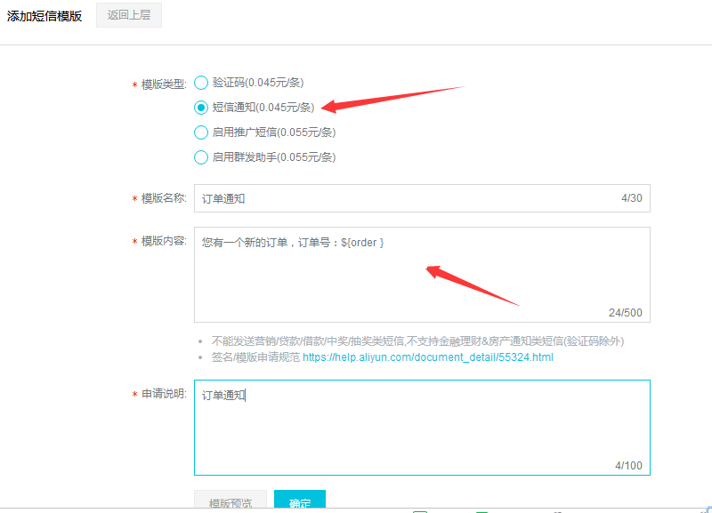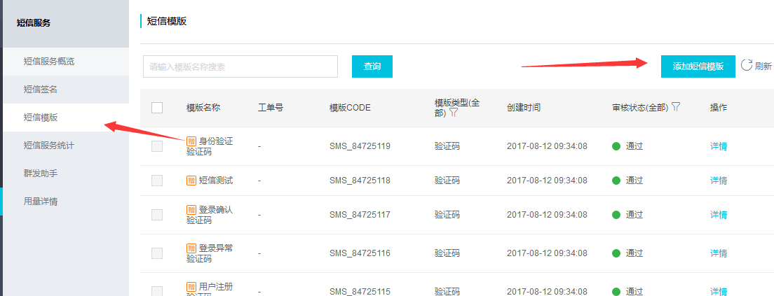 - 創(chuàng)建短信模版