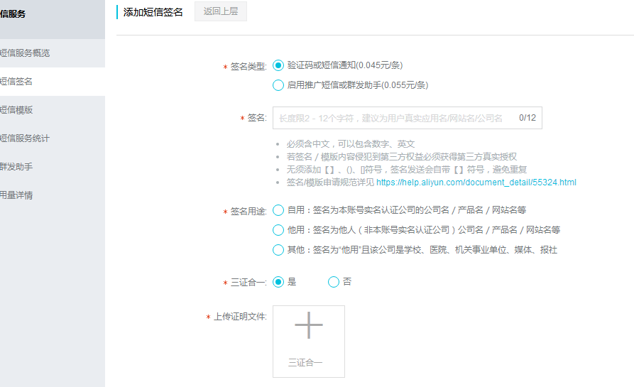 - 創(chuàng)建短信簽名