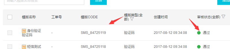 - 審核通過(guò)后獲取模版CODE