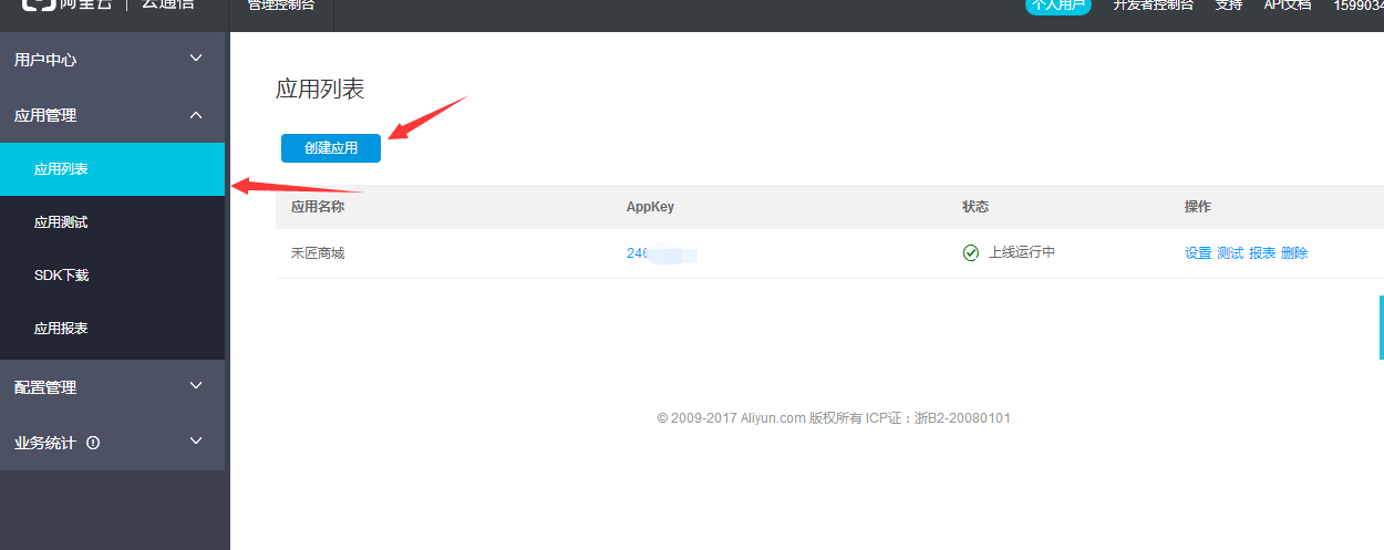 - 首先進(jìn)入阿里大于創(chuàng)建應(yīng)用