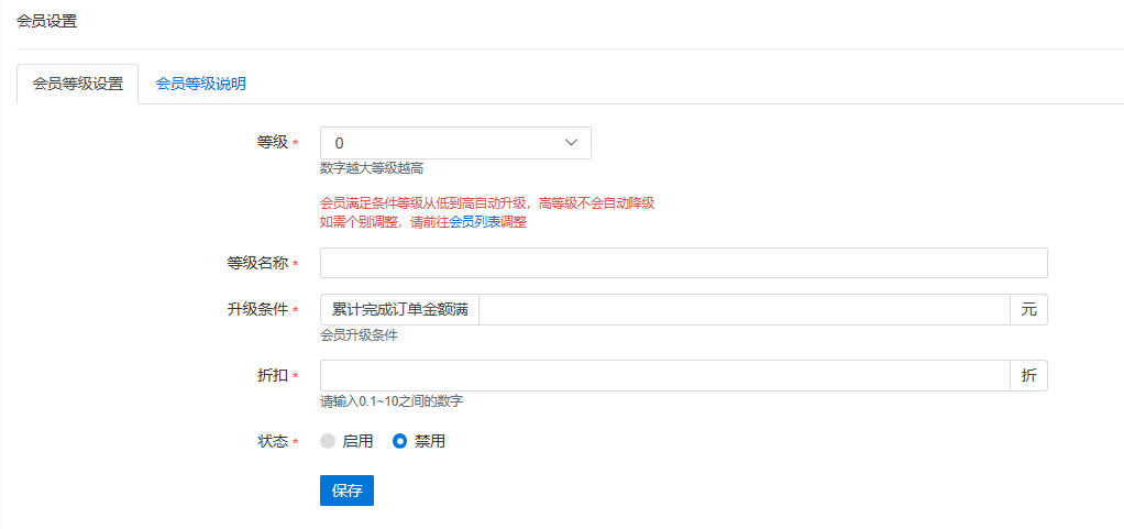 會員等級說明:在小程序端會員中心顯示的文字性描述