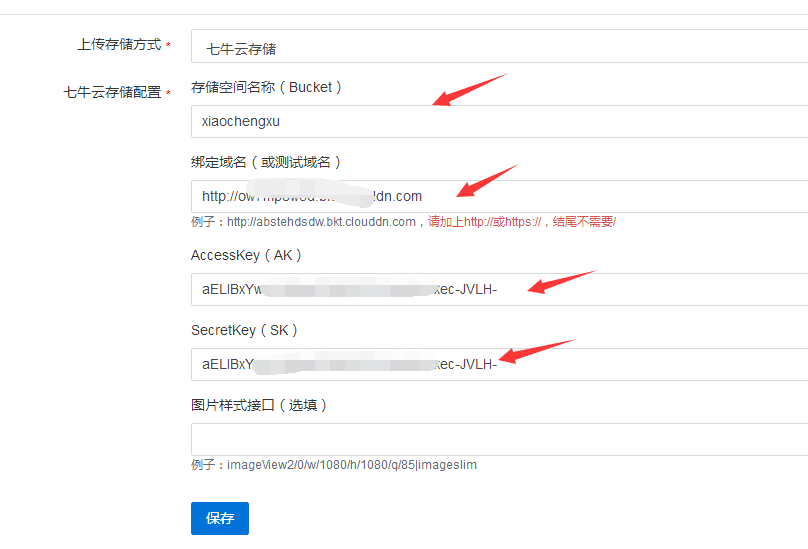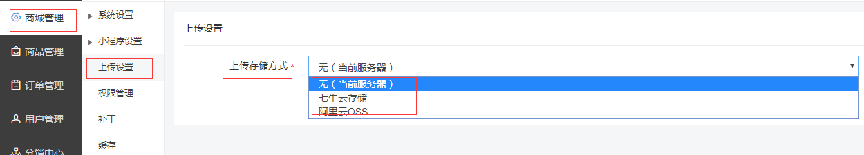 • 將所有信息填寫到商城后臺:商城管理=》上傳設置