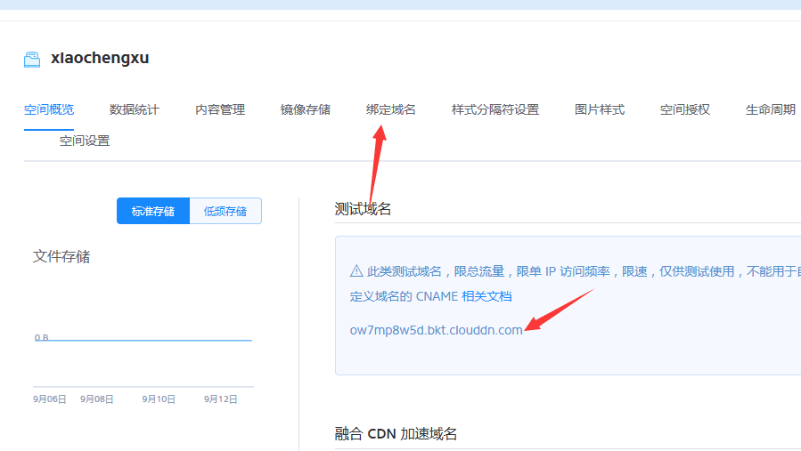 • 獲取域名,點擊對象存儲,懂的人可以設置綁定域名