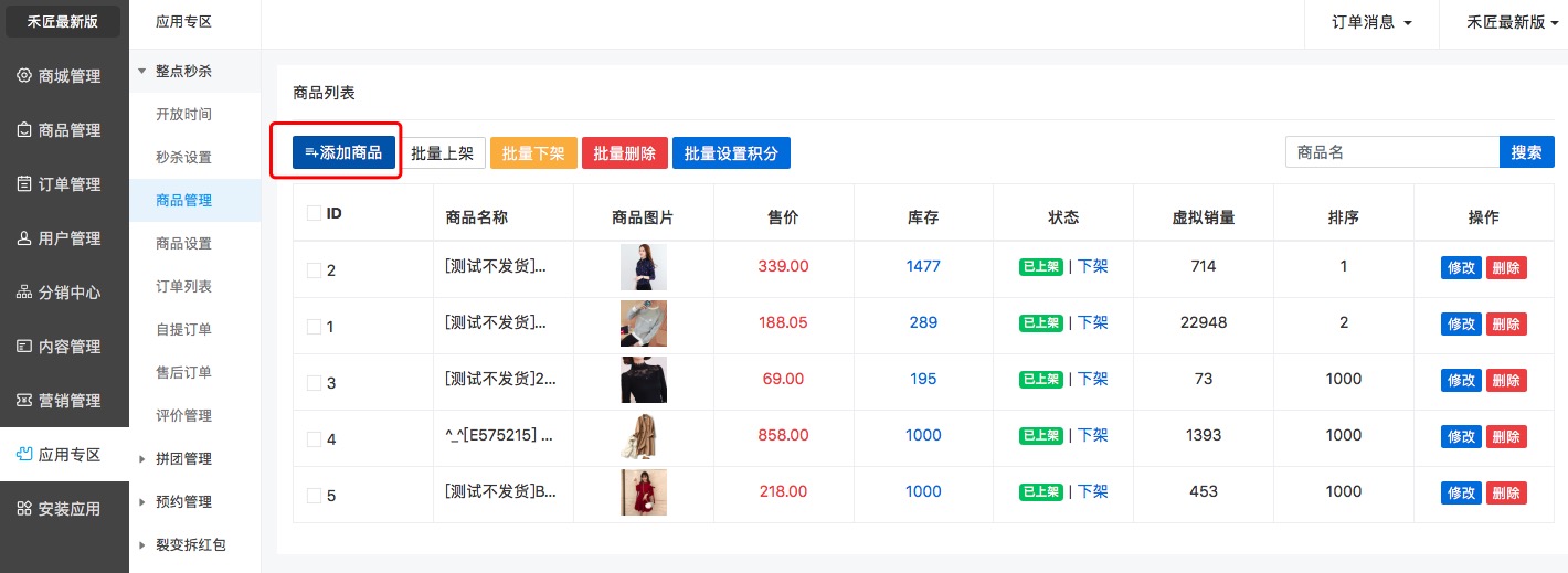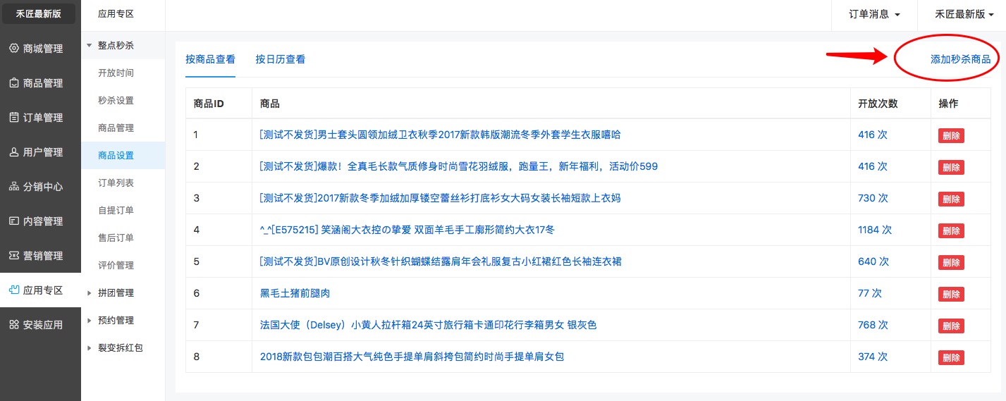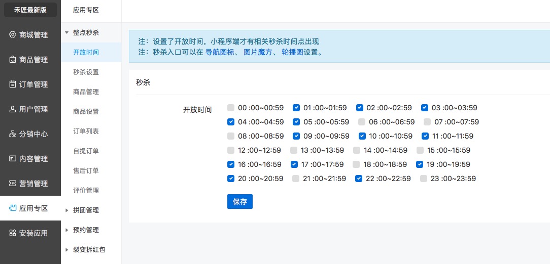 注:設置了開放時間,小程序端才有相關秒殺時間點出現